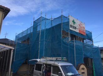 - 足場・外壁塗装・雨樋塗装・破風鼻隠し塗装・軒天塗装・シャッター、シャッターボックス塗装・コーキング打替え・ベランダ床塗装・門扉塗装