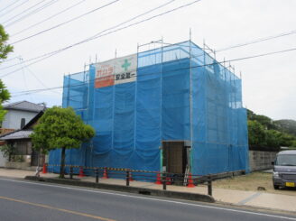 高圧洗浄で、付着した汚れや苔などを洗い流します